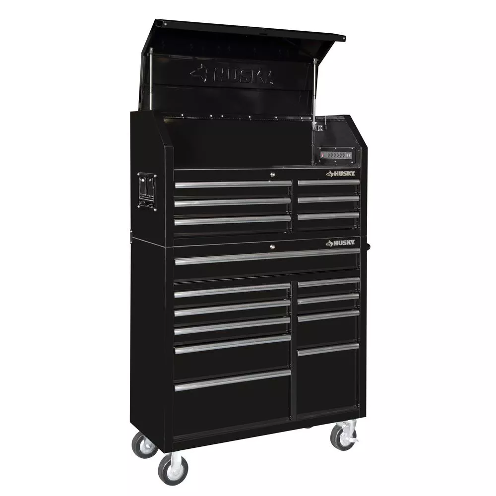 41 IN. X 24.5 IN D 16-DRAWER GLOSS BLACK TOOL CHEST UND CABINET COMBO