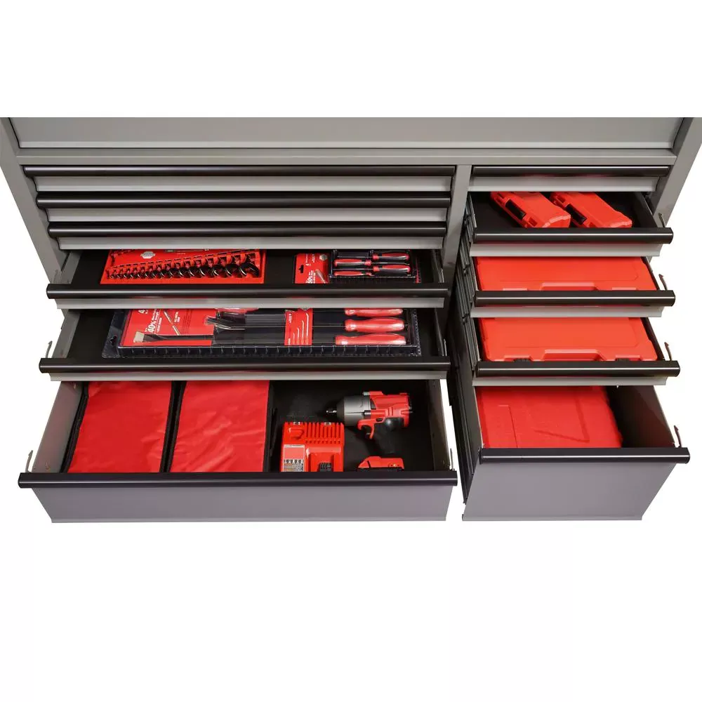 Oh Gott, 56. W 18-DRAWER COMBINATION TOOL CHEST UND CABINET SET, MATTE GRAY