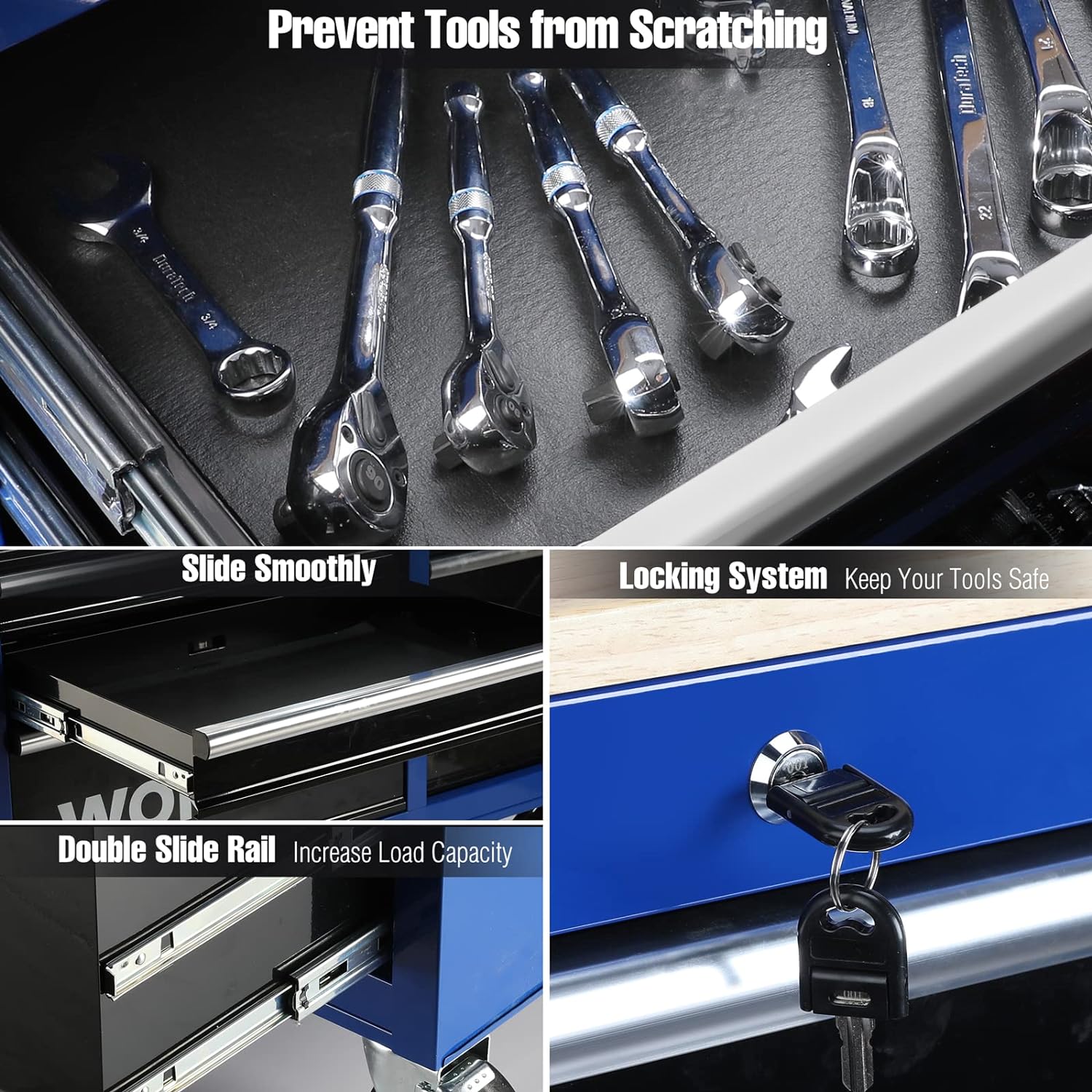 EXTREME TOOLS RX SERIES 55" 12-DRAWER ROLLER - BLACK W/BLUE DRAWER PULLS
